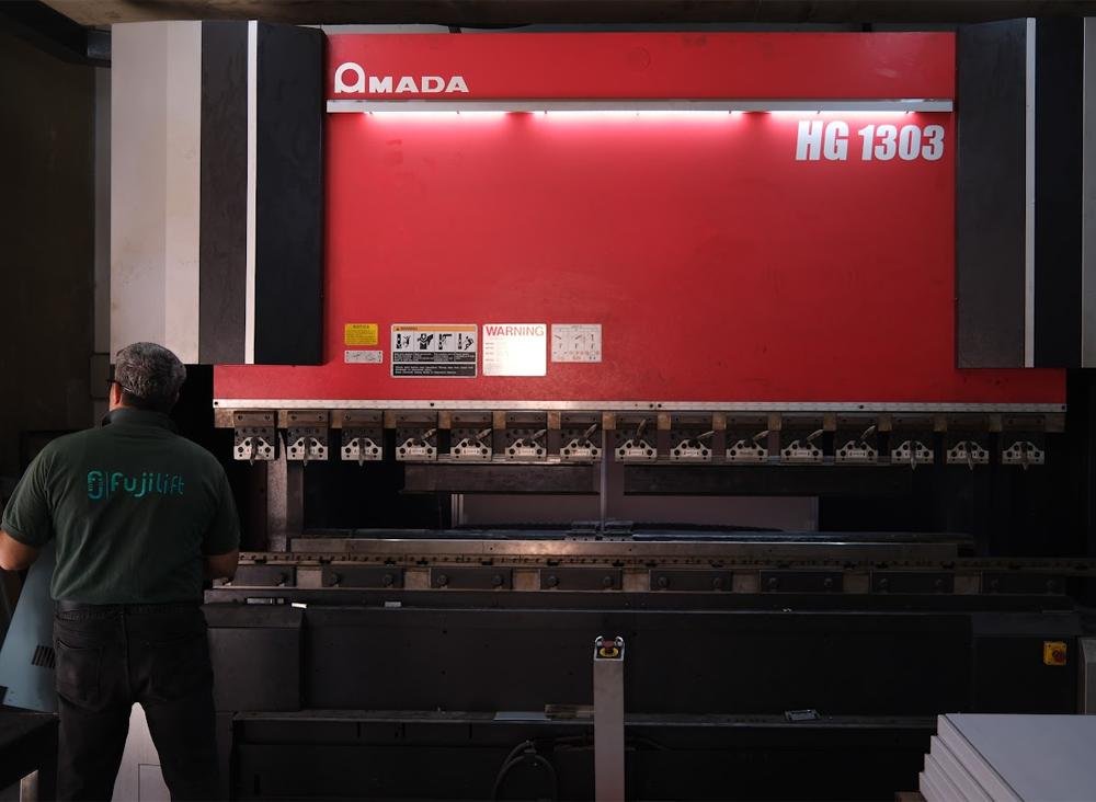 Today, our production line features cutting-edge equipment such as Bystronic (Switzerland), Colgar (Italy), and Amada (Japan) for laser cutting and for press brake bending enabling us to manufacture elevator systems with exceptional quality, consistency, and reliability.